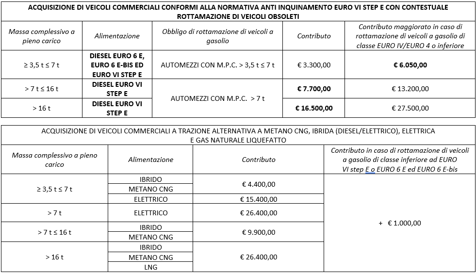imprese di autotrasporto merci conto terzi un contributo a fondo perduto finalizzato ad incentivare l’acquisto di automezzi, anche Diesel di classe EURO VI step E, rimorchi e semirimorchi, per l’adeguamento ed il rinnovo del parco veicolare, anche attraverso la rottamazione di veicoli obsoleti.