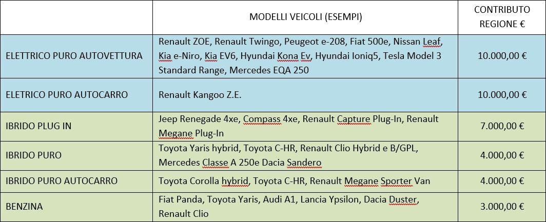 Il contributo regionale può essere richiesto per un massimo di dieci veicoli ed è cumulabile con l’Ecobonus statale.