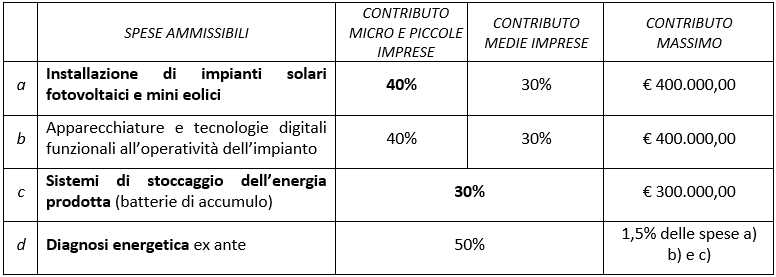 contributo a fondo perduto per l’acquisto e l’installazione di impianti fotovoltaici per l’autoconsumo e sistemi di stoccaggio dell’energia.
